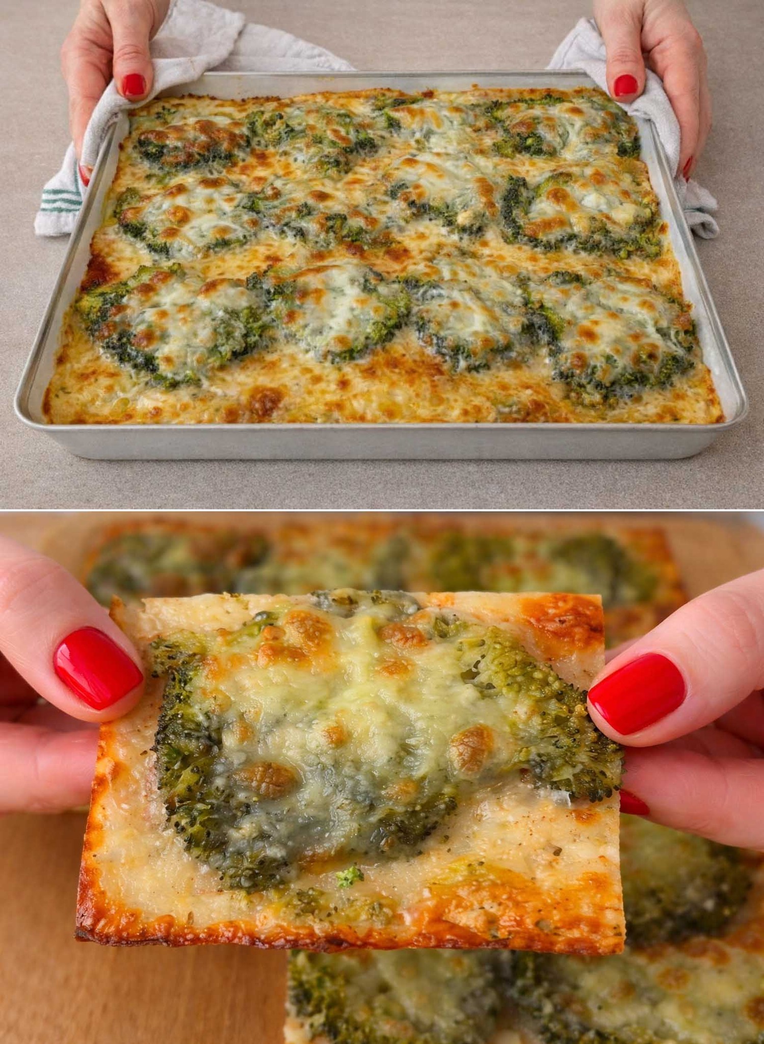 Distribuire le cimette di broccoli nella teglia e, con l’aiuto del fondo di un bicchiere, schiacciarle delicatamente. Non devono diventare una purea, solo appiattirsi.