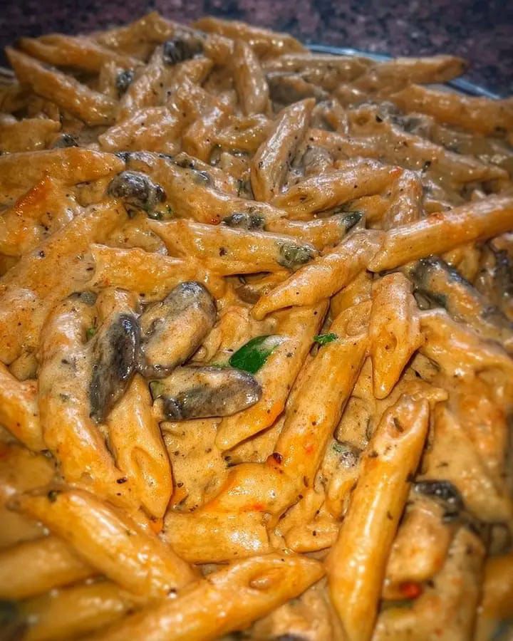 Trasferisci la pasta nella padella con i funghi e aggiungi un mestolino d’acqua di cottura. Salta a fuoco vivace per 2 minuti, poi unisci la panna e il prezzemolo tritato. Mescola finché diventa cremosa e profumata. 👉 La panna non deve bollire: basta un minuto per creare una salsa vellutata.