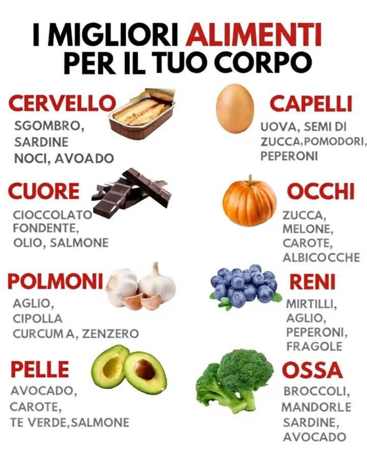 In questo articolo ti accompagno alla scoperta dei migliori alimenti per ogni parte del corpo, spiegando perché funzionano, cosa contengono e come inserirli facilmente nella tua giornata.
